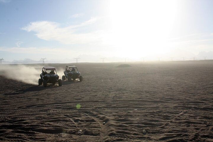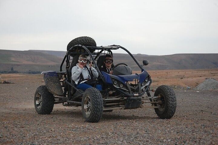 Thrilling off-road buggy ride across sand dunes, rocky paths, and rugged desert terrain.