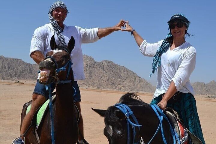 What sets this tour apart is its unique combination of two contrasting desert adventures, offering a well-rounded way to explore the Sinai landscape. Begin with a peaceful ride on traditional Egyptian desert horses—a timeless method that lets you fully absorb the stillness and scale of the Red Sea desert. Then, shift into high gear with a quad bike ride, tearing across the dunes for an exciting burst of energy. It’s a rare blend of calm and thrill, all in one outing.