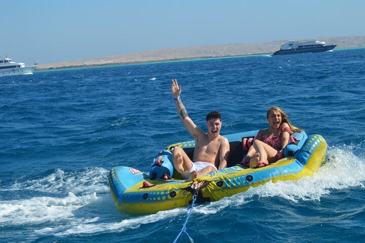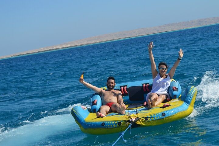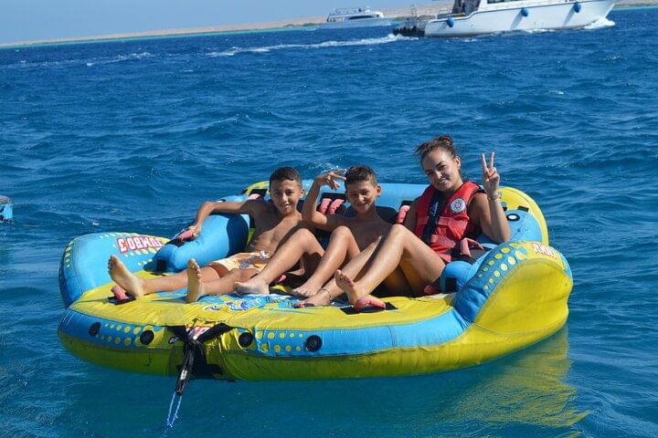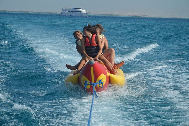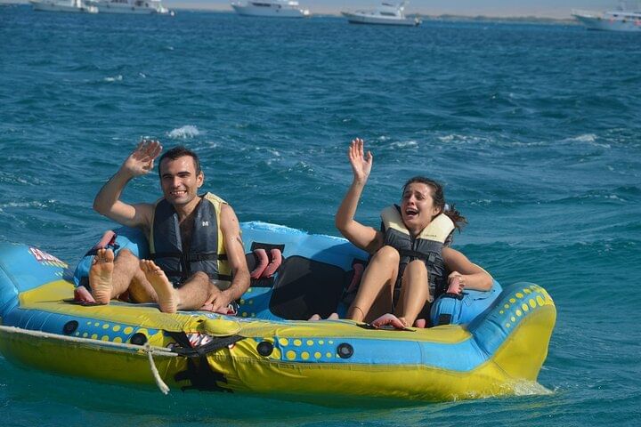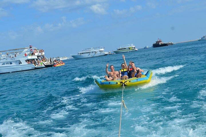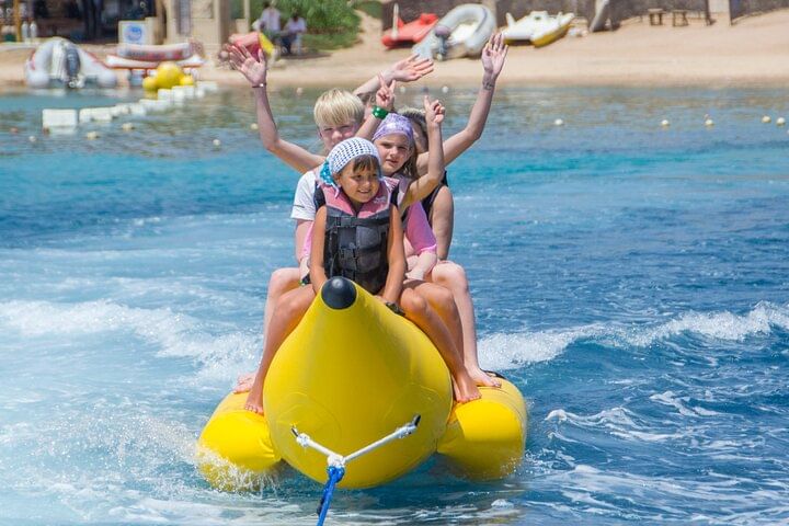 Your experience begins with a relaxed hotel pickup in a private, air-conditioned vehicle. At the beach, the action starts with a thrilling banana boat ride—hold on tight as you glide across the Red Sea, bouncing over the waves and sharing laughs with friends or family.