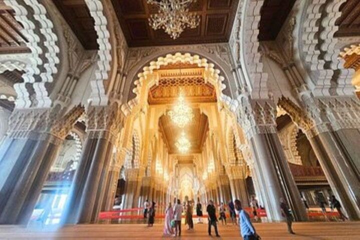 Begin your journey at the iconic Hassan II Mosque, a breathtaking architectural masterpiece set against the Atlantic Ocean. Then, step into the lively Old Medina, where age-old traditions and colorful alleyways invite exploration.
