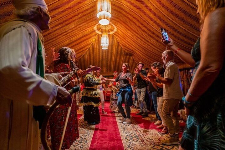 Dine like royalty inside lavish Berber tents while savoring a full Moroccan BBQ feast, complete with time-honored dishes and refreshing mint tea. As the music fills the air and performers bring the night to life, you’ll be transported to a world where tradition and celebration unite.