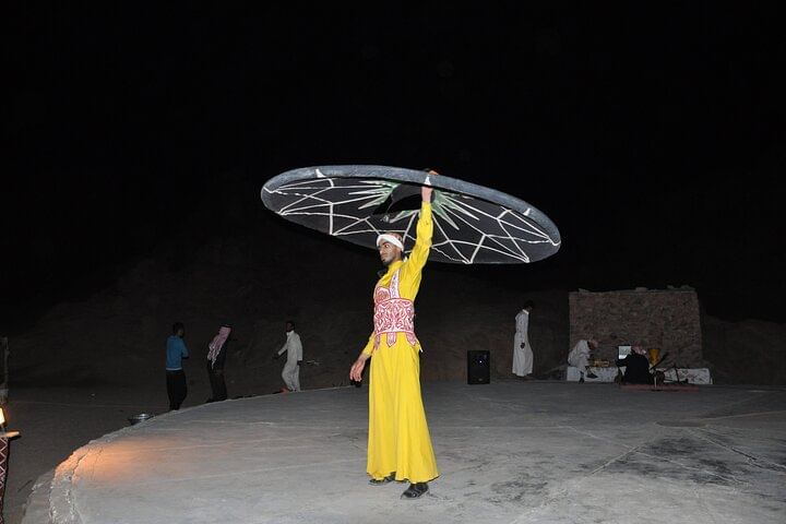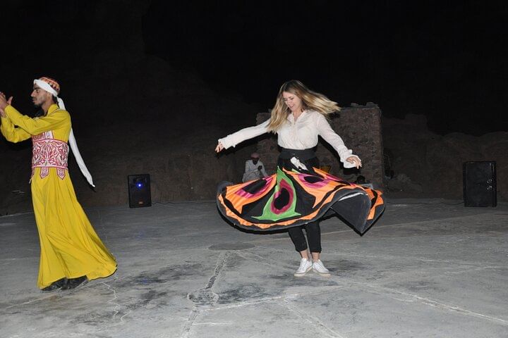 As the day comes to a close, marvel at a stunning desert sunset, painting the sky in vibrant colors. At a traditional Bedouin camp, enjoy a delicious dinner featuring local flavors while taking in a lively performance of traditional music and dance. A relaxing camel ride adds an authentic touch, providing a unique perspective on the desert’s evening beauty.