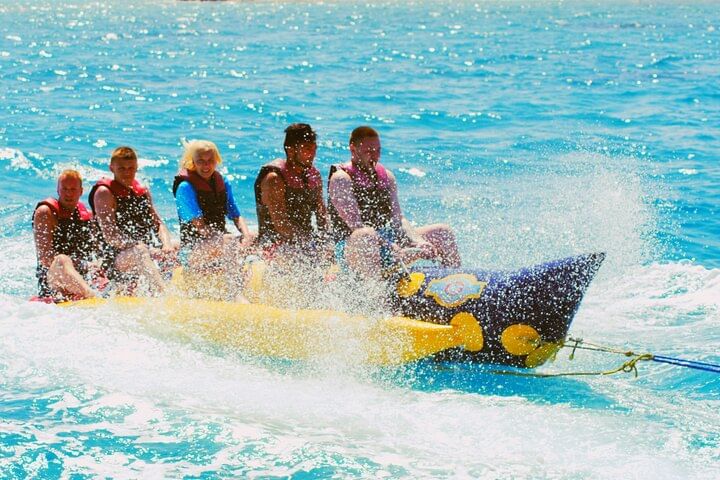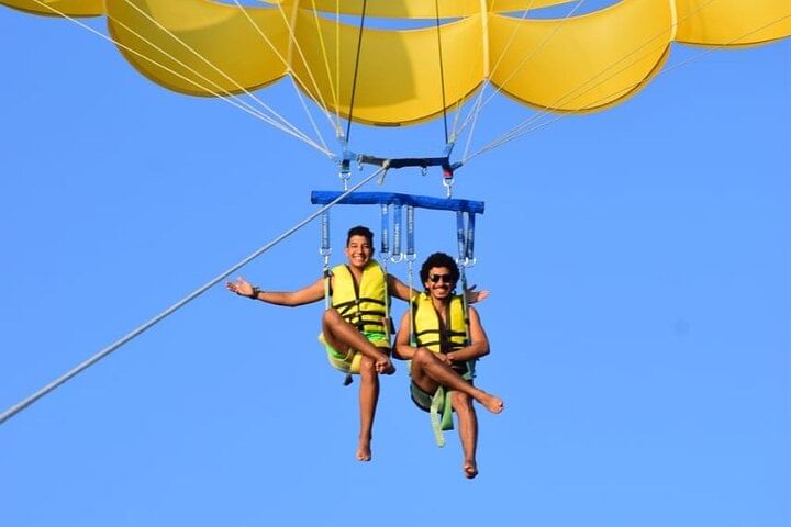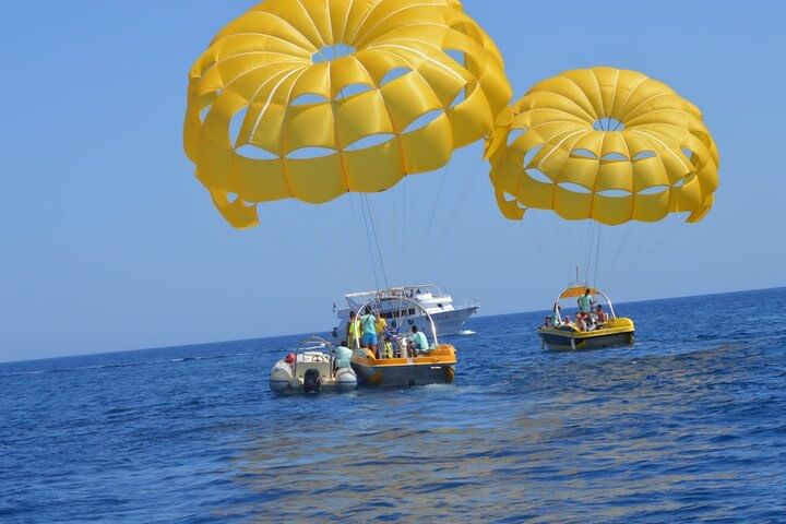 To top off your day, enjoy an unforgettable parasailing experience, soaring high above the coastline for panoramic views of the shimmering sea below.