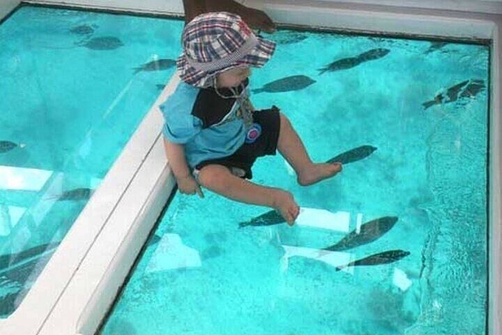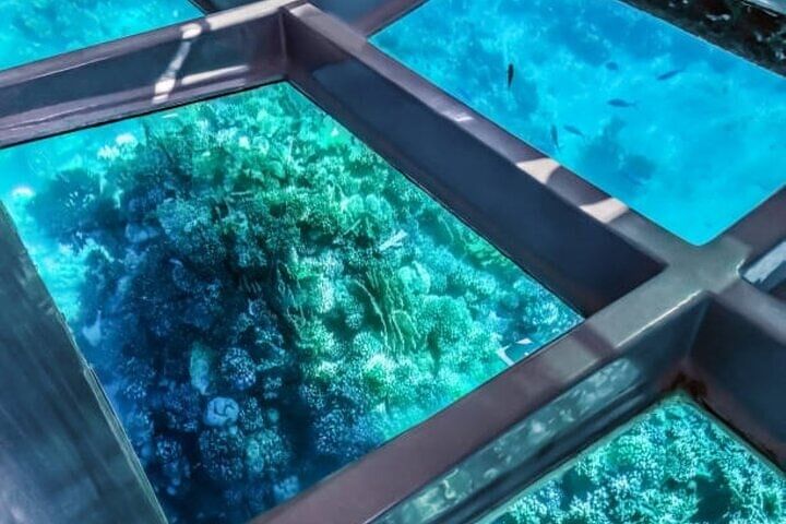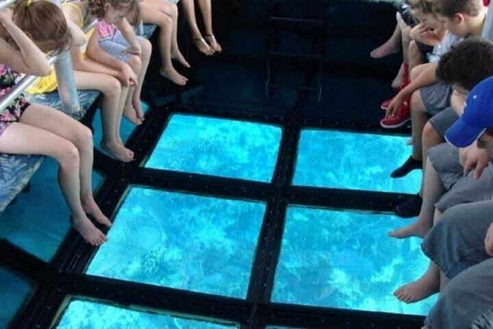 Unlike traditional water activities, this relaxing and safe tour offers clear, uninterrupted views of the Red Sea’s colorful ecosystem through large glass panels beneath your feet. Watch as schools of tropical fish, intricate coral formations, and fascinating sea creatures glide by—all from the comfort of a shaded, modern boat.