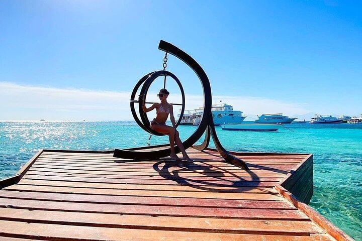 Embark on a day trip to Hula hula Island, located within the stunning Giftun Island National Park, and enjoy a hassle-free and exciting experience. Our day trip package includes everything you need for a memorable visit, including round-trip transportation, a delicious lunch, and a range of activities such as snorkeling, water games, and volleyball. Alternatively, you may choose to simply relax and soak up the sun on the island's pristine white-sand beach, surrounded by crystal-clear waters. With so much to see and do, a visit to Paradise Island is sure to be a highlight of your Hurghada vacation.