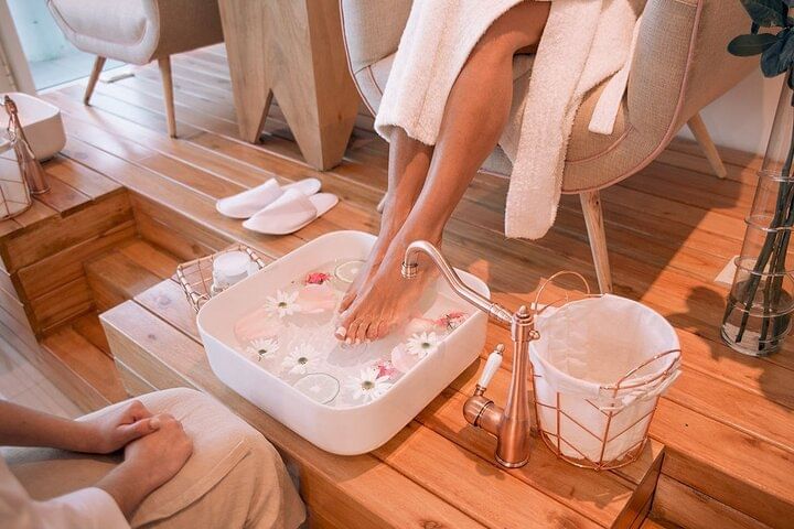 Indulge in a blissful escape with our luxurious foot spa. Immerse your feet in a soothing water and salt soak, followed by a gentle cleansing and exfoliation to remove dead skin cells. Our skilled therapists will pamper your feet with a relaxing shampoo and hydrating cream massage, leaving them soft, smooth, and rejuvenated.
