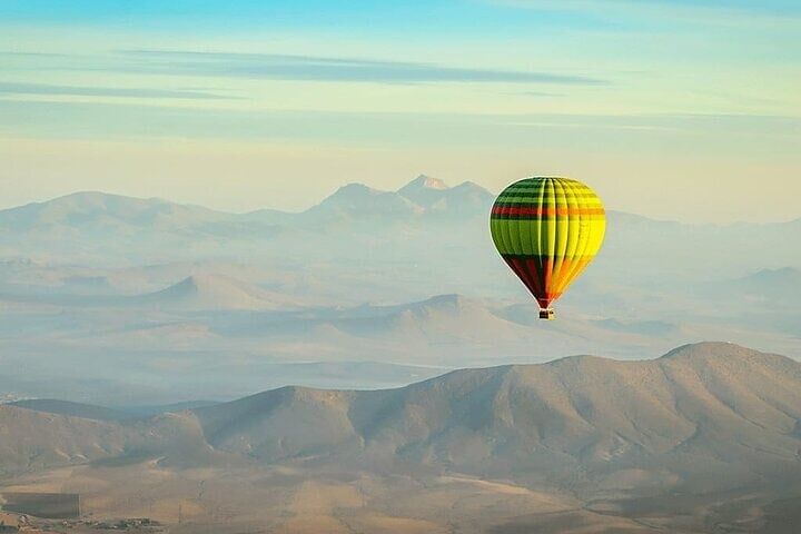 Experience the magic of a sunrise hot air balloon ride over the Atlas Mountains, departing from Marrakech. Float above majestic peaks, desert valleys, and traditional villages as the rising sun casts golden light across the landscape.