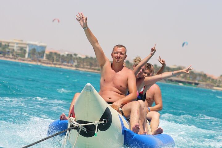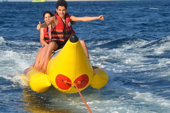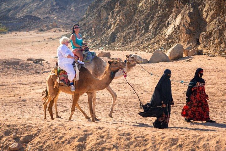 Enjoy the ultimate desert adventure in Sharm El Sheikh, where thrilling land and water activities create an unforgettable experience. Ride across the dunes on an ATV, enjoy a peaceful camel trek, soar high with parasailing, and explore the underwater wonders with a banana boat and glass-bottom boat tour. Savor a traditional Bedouin tea and indulge in a delicious lunch while taking in the breathtaking scenery. This exciting adventure caters to all, whether you're seeking thrills or simply looking to connect with nature.