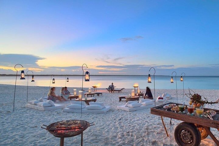 The waters surrounding Mnemba Island are breathtaking, with coral reefs and underwater vegetation creating a thriving barrier reef ecosystem. This rich marine environment is teeming with a diverse array of colorful fish and other fascinating sea creatures.