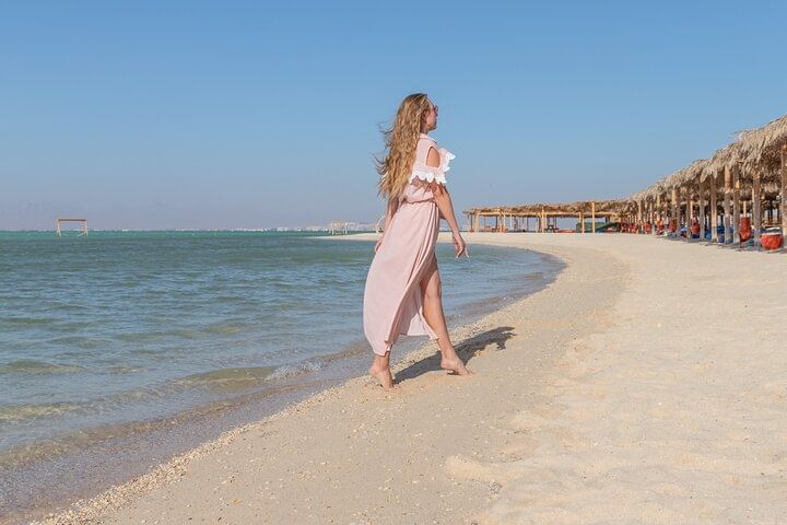 Embark on the ultimate Red Sea escape with this full-day snorkeling tour from Hurghada to the stunning Orange Island. Glide across crystal-clear waters, bask in Egypt’s endless sunshine, and discover vibrant coral reefs brimming with marine life.