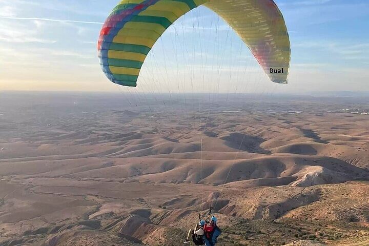 This paragliding experience is one of the few in Morocco that offers aerial views of three iconic landscapes in a single flight—the majestic Atlas Mountains, the rugged Agafay Desert, and the shimmering Lalla Takerkoust Lake. Unlike standard city tours, it combines heart-pounding excitement with breathtaking scenery, all captured on professional GoPro footage. Guided by experienced instructors and suitable for all skill levels, this adventure offers a rare blend of adrenaline and serenity, giving you a unique bird’s-eye perspective of Marrakech’s most spectacular natural wonders.