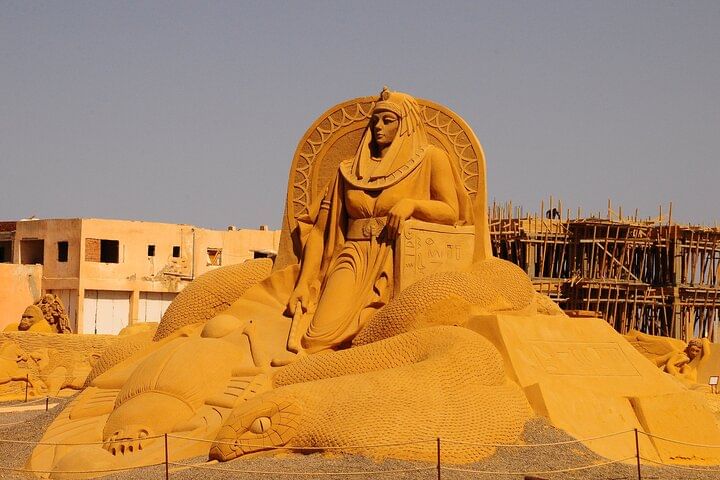 Begin your Tour with a private transfer from your hotel to one of the Sand City museum .Hurghada's Sand City is an awe-inspiring open-air Sand City museum showcasing incredible sand sculptures created by talented artists from all around the world. The sculptures depict famous landmarks, historical figures, and mythical creatures, all intricately crafted from sand. Walking through the vast and colorful displays is like taking a journey through time and imagination. Visitors can also enjoy live sand sculpting demonstrations, take part in workshops, and even try their own hand at sand sculpting. It's a must-see attraction for anyone visiting Hurghada, offering a unique and unforgettable experience.