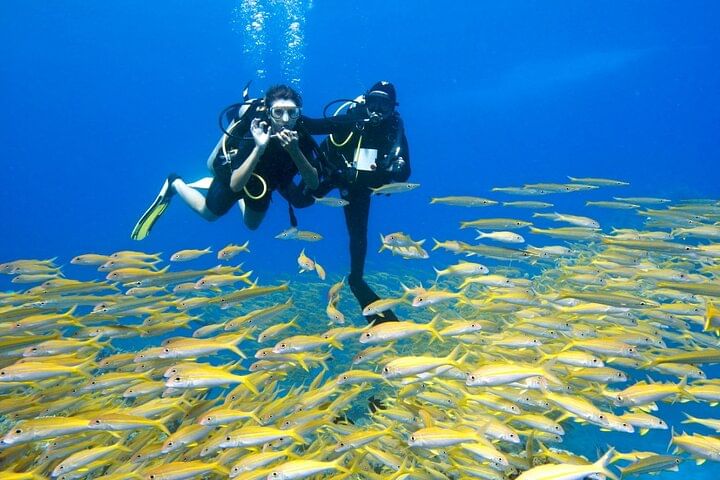 This premium diving tour offers the best of Sharm El Sheikh, with the rare opportunity to explore two of the Red Sea’s top destinations in a single day. Start at Ras Mohamed National Park, where you’ll dive into Egypt’s most vibrant marine reserve, home to colorful coral reefs and a stunning variety of marine species. Then head to the iconic White Island, a natural sandbank surrounded by crystal-clear waters. Enjoy a second dive in this pristine setting before relaxing on the island’s untouched white beaches. Unlike standard tours, this experience is designed for both adventure and comfort, with expert dive guides, professional equipment, and a freshly prepared lunch served on board. Whether you're new to diving or a seasoned pro, the combination of thrilling underwater exploration and peaceful island vibes makes this one of the most memorable diving trips in Sharm El Sheikh.