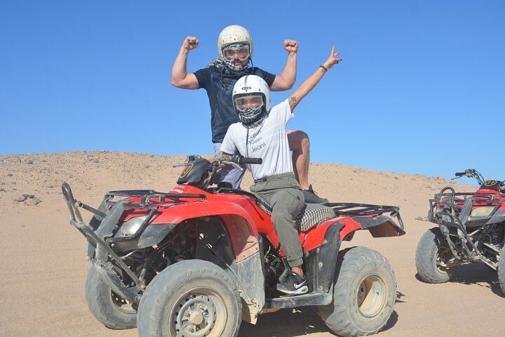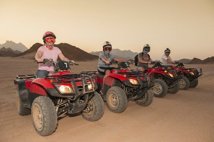 Experience the magic of the Red Sea Desert at sunrise on an exhilarating quad bike tour from Sharm El Sheikh. Before setting off, you’ll have the opportunity to test drive your quad bike and get familiar with its key features, ensuring a safe and exciting ride.