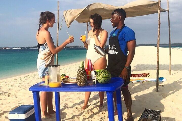 Start your day at Nakupenda Island (Sandbank), where you can unwind on a beach that disappears with the tide. Sail aboard a traditional Swahili dhow, enjoying ginger-spiced tea, refreshing juices, homemade bread, and tropical fruits. Dive into the crystal-clear waters for snorkeling and indulge in local fruits, snacks, and a Swahili lunch buffet with soft drinks.