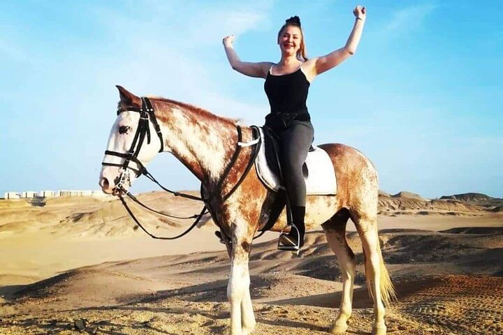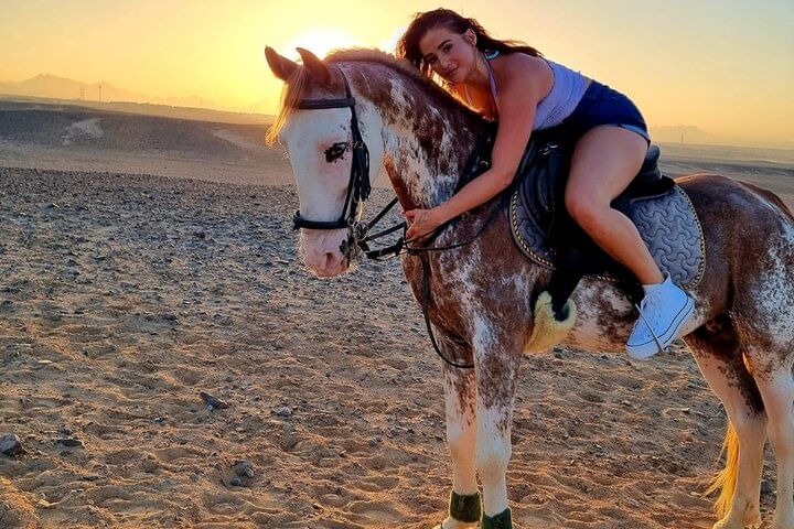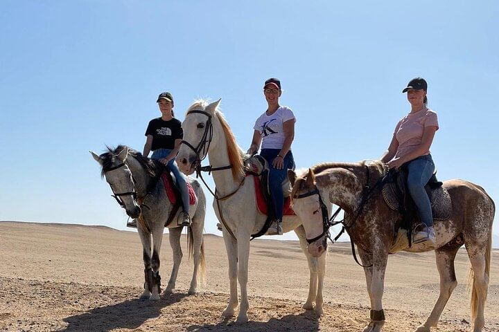 Experience the Hurghada desert in a day filled with adventure! Start with an hour of horseback riding in the desert and along the Red Sea. Then, take a thrilling 7-minute parachute flight for breathtaking views. Next, enjoy a 2-hour semi-submarine tour to explore coral reefs and vibrant fish, with 30 minutes of snorkeling included. Finally, visit Hurghada Marina for memorable photos. This unforgettable experience is great for all ages!